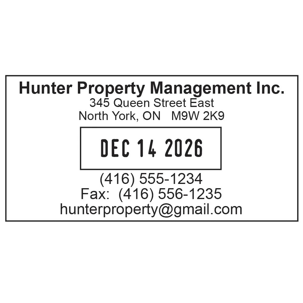 1 1/8 x 2 3/4, 3 lines above and 3 lines below date
